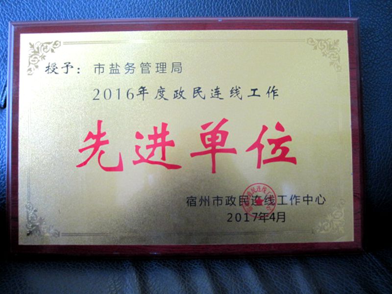 宿州市鹽務局被評為“2016年度政民連線工作先進單位”