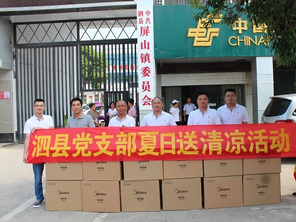 中共安徽鹽業(yè)房地產(chǎn)開發(fā)有限公司泗縣黨支部赴屏山鎮(zhèn)開展“夏日送清涼”活動