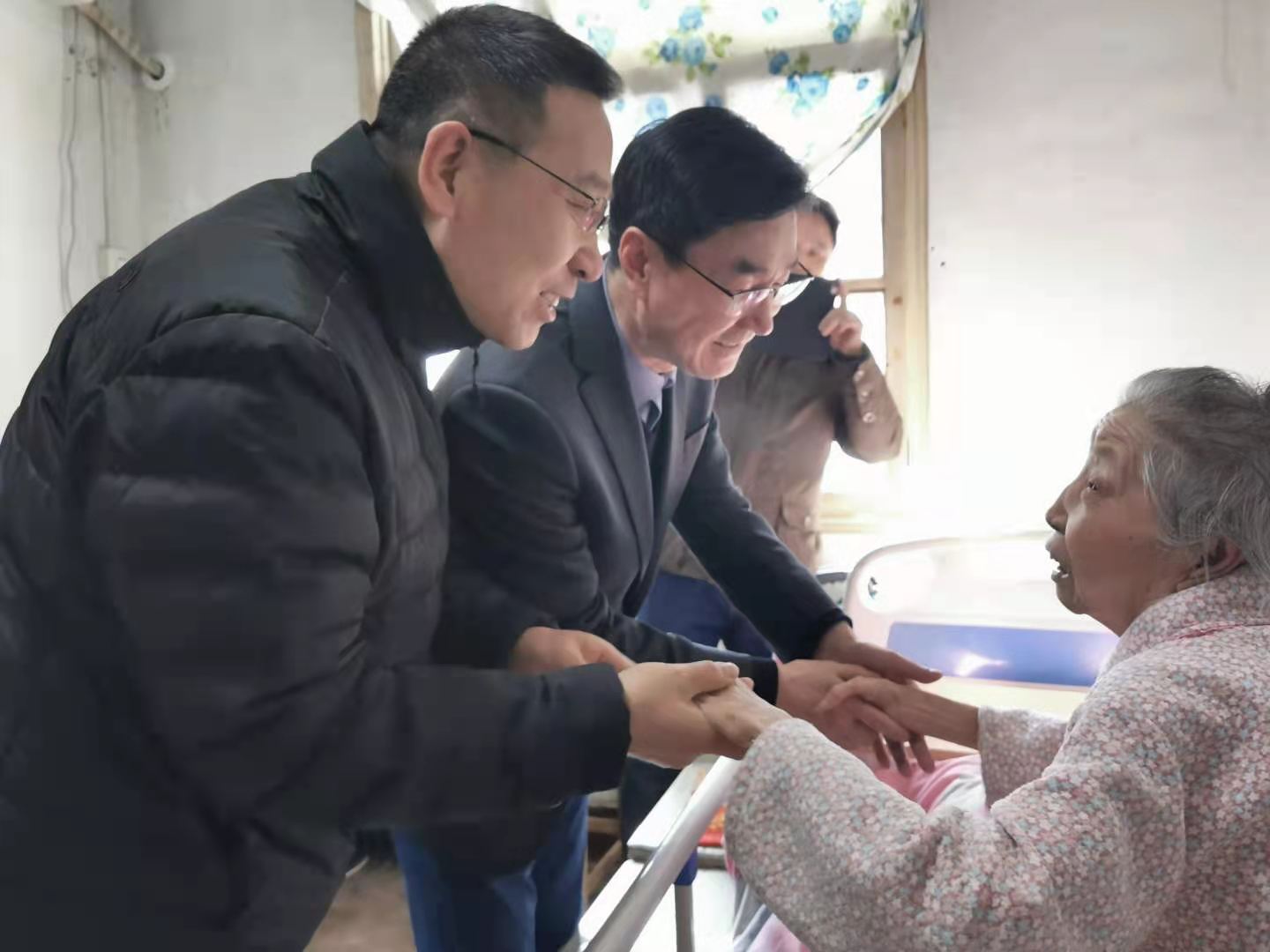 2021年2月9日,省國資委黨委委員、省紀委監委駐省國資委紀檢監察組組長黃干一行來到集團公司走訪慰問老黨員和生活困難黨員,集團公司黨委書記、董事長馬占文隨同慰問。在離休老黨員王玉華和退休困難黨員張來元家中,黃組長詳細詢問他們的身體、生活狀況,代表組織向她們拜年,叮囑他們保重身體,安享晚年,并送上了組織慰問金。