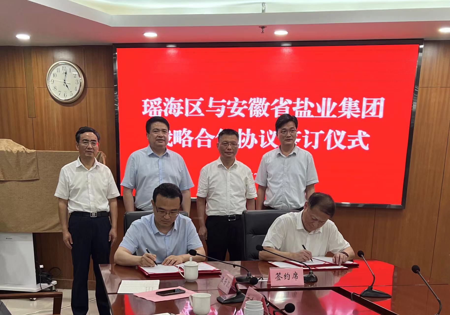 7月19日,省鹽業集團與瑤海區簽署戰略合作協議。集團黨委書記、董事長羅太忠,黨委副書記、總經理、董事王思軍,瑤海區委書記、合肥東部新中心黨工委書記陸勤山,區委副書記、區長童友好出席簽約儀式并見證簽約。