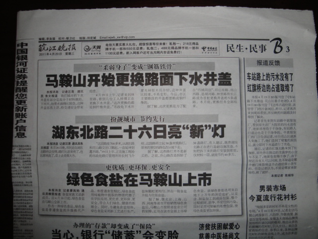 《皖江晚報》:綠色食鹽在馬鞍山上市